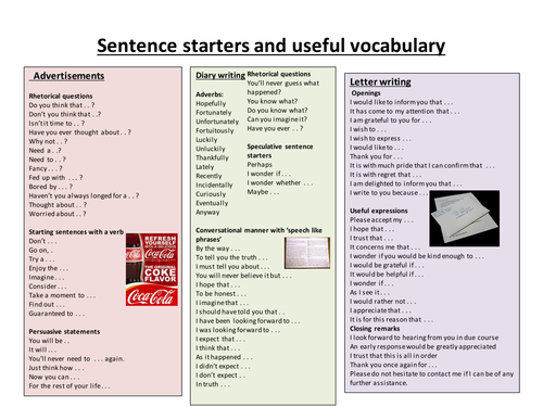 English Language Paper 2 Question 5 Sentence Starters : Differentiated AQA Paper 1 and 2 Revision Language ... / 'last week my son/brother/dad told me a shocking story:' include: